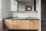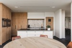 Daarom stelden wij voor om in de keuken te werken met eikfineer met een lichte rustieke afwerking, Miele apparaten, en een ouder-ogende tablet in Nero Zimbabwe. Rustig strak met een landelijke vibe. De studio doopten we om in warm neutraal grijs om het prachtige uitzicht van de wijngaard in de kijker te zetten. De badkamer zet de puntjes op de ‘i’ met het marmer, Emperador Grey Verzoet. Maar dat is nog niet alles.